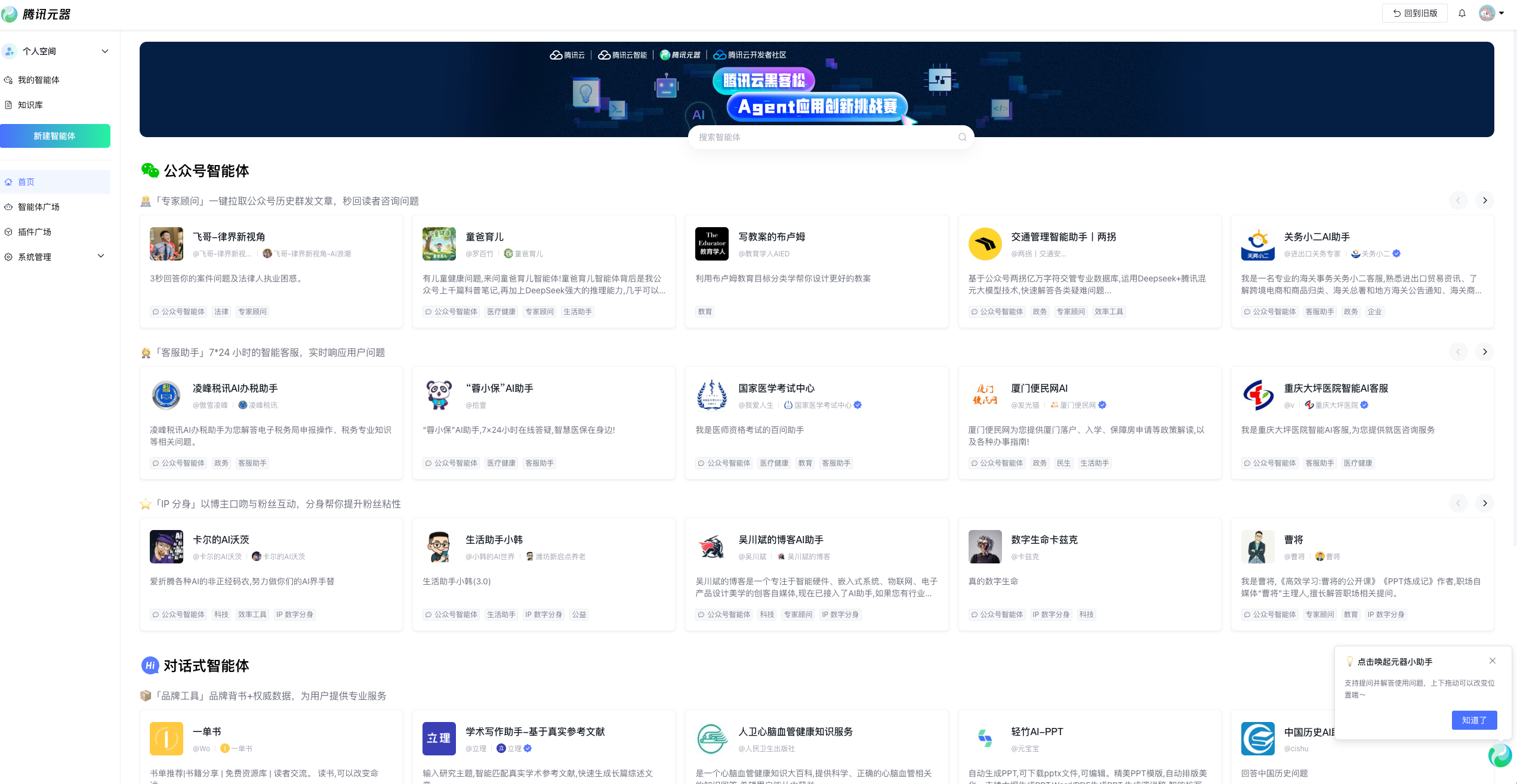 腾讯元器是腾讯推出的低门槛AI智能体(Agent)开发与服务平台,核心定位是“低代码/无代码AI应用搭建工具。旨在帮助企业和个人开发者快速构建、调试及部署基于大模型的智能应用,无需深厚编程基础即可实现AI能力的场景化落地。
