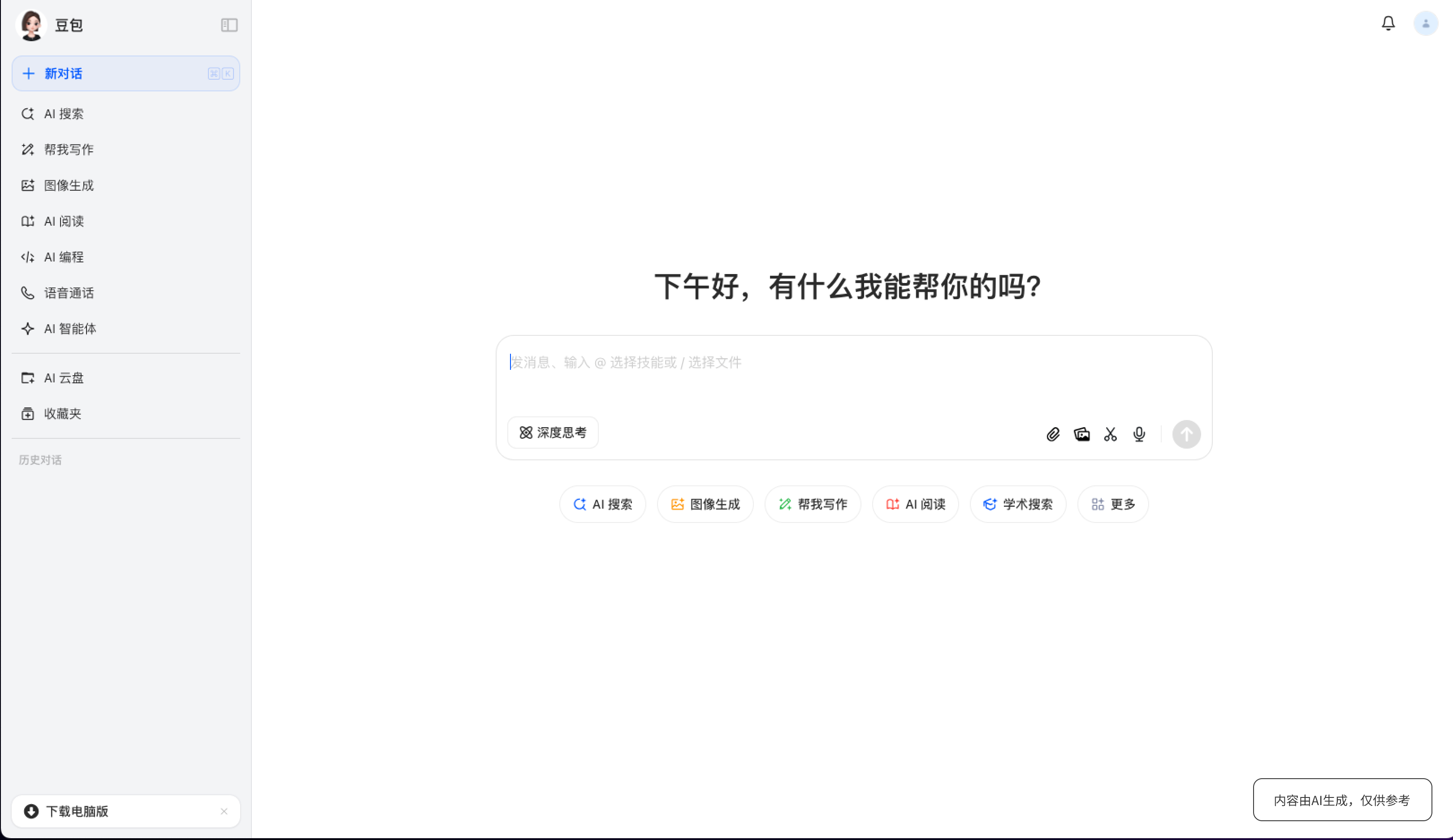 豆包是一个具备很强专业性的智能伙伴,支持多模态。